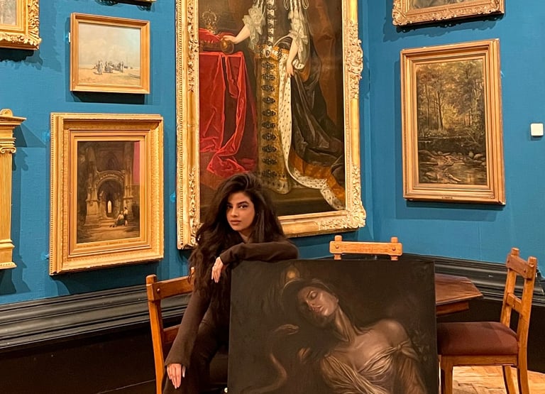 Adeela Omar is an oil painter based between UK and Dubai, whose work explores the inner landscapes of the psyche - identity, instinct, transformation, and becoming. Drawing inspiration from Jungian psychology, mythology, and lived experiences, her paintings inhabit the threshold between the conscious and unconscious, where symbols emerge not as decoration, but as necessity.